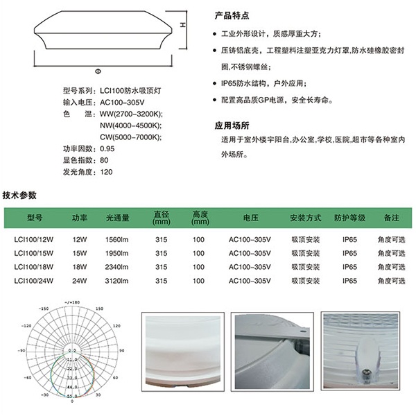 LCI100系列LED防水吸頂燈